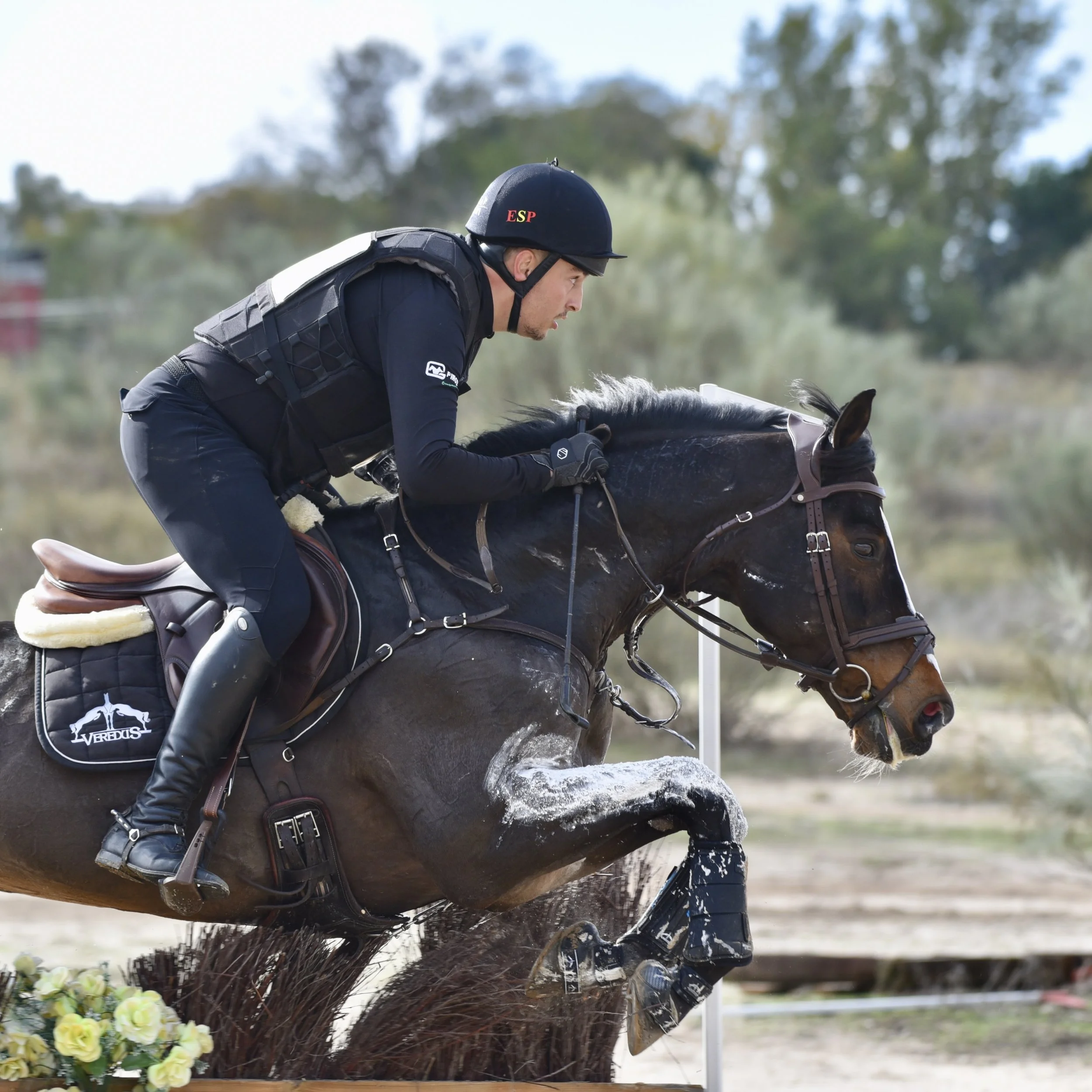 "Aude es una alumna que se incorporó a la finca en septiembre. Tenía experiencia en salto, pero quería dar el paso al completo. Su caballo tenía buenas actitudes, bravo, un poquito resistente de cara al agua, eso sí, pero precisamente, acudir a la Dehesa nos permitió que el caballo se acostumbrase a este terreno. Hizo un doble cero y una doma buena, supersatisfecho, que en este apartado era en el que más trabajamos cuando se incorporó con nosotros. Aude me aseguró que se había enamorado de la adrenalina del cross.