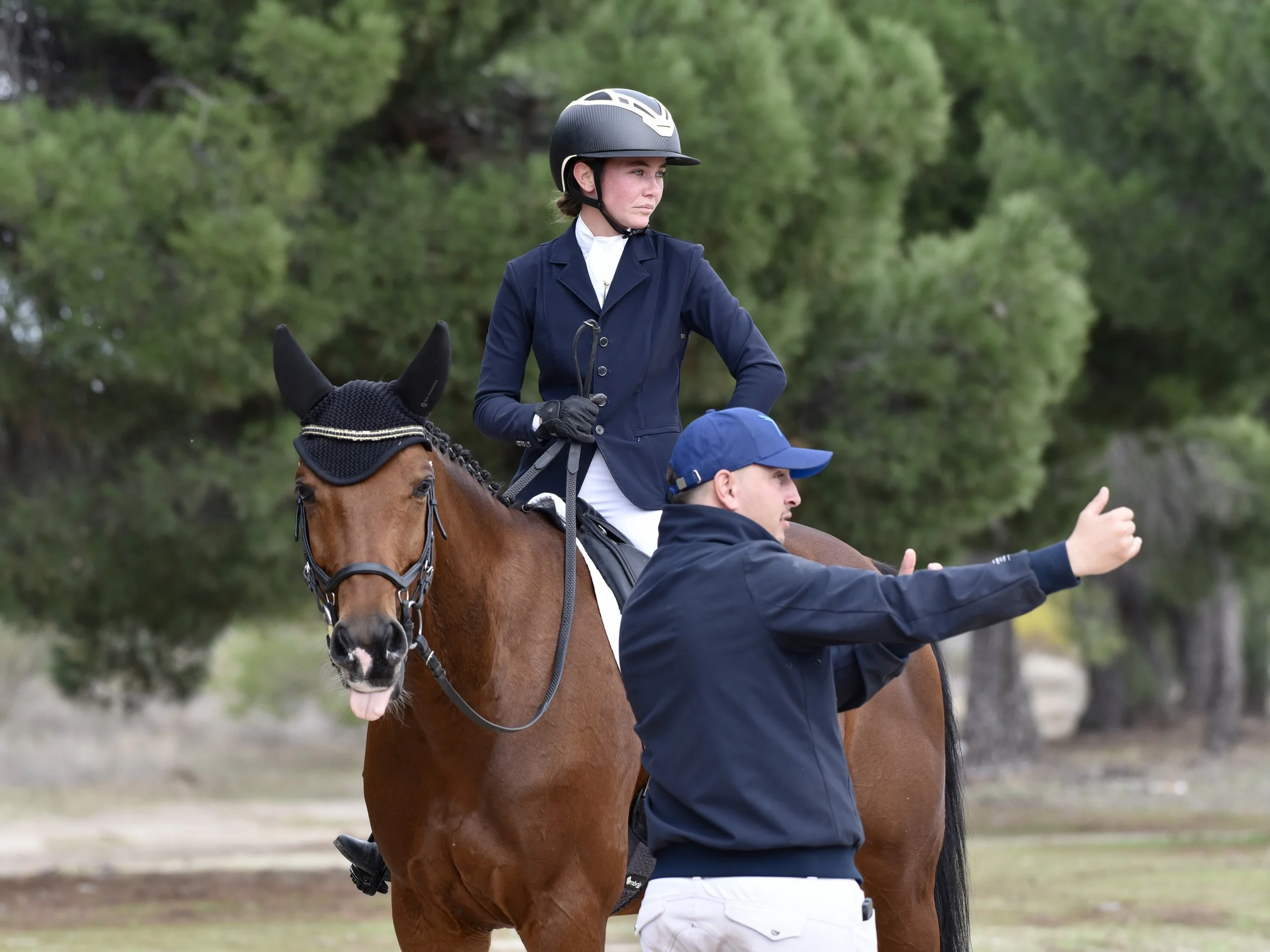 "Acudimos con tres alumnas de Finca Epona al concurso, ya que ellas también disputaron pruebas. Por un lado, Jeanne, cuyo caballo es experimentado en pruebas de salto de 1m30. Es un animal sólido, con potencial de dar el paso al concurso completo. Valiente, saltador y con movilidad. Muy 'completero', como decimos nosotros", nos cuenta Mateo sobre esta alumna francesa, que acabó con excelentes sensaciones tras disputar la prueba: "Nada más bajarse del caballo me dijo: 'Me cambio al completo al 100%'. Fue una alegría tremenda. Para mí, es muy importante promocionar esta disciplina en España".